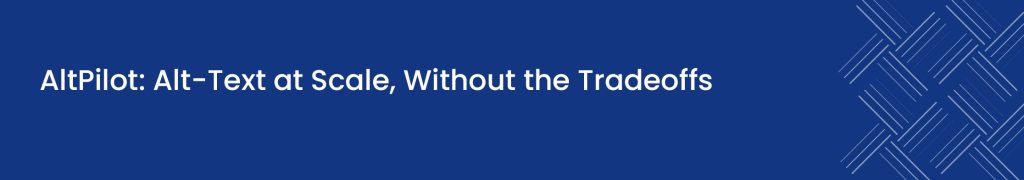 Unlike one-size-fits-all tools, AltPilot understands nuance. It delivers WCAG and Section 508-compliant alt-text with speed, while maintaining human oversight through a four-step review process.