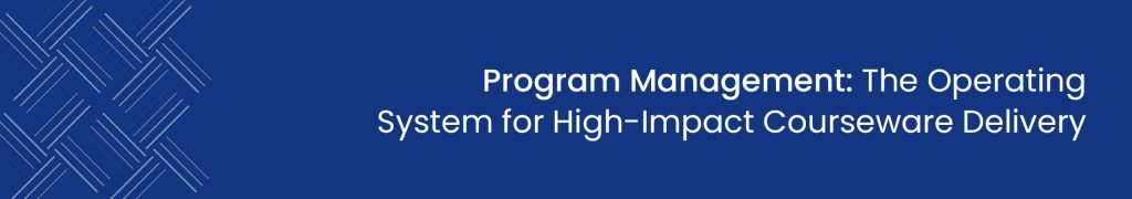 Successful courseware isn’t just about strong content, it’s about execution. In this blog, we break down what makes or breaks large-scale digital learning initiatives. From managing SMEs and aligning with academic outcomes to scaling production across formats and platforms, Integra’s Program Management Office (PMO) brings strategy, systems, and structure to complex courseware delivery.