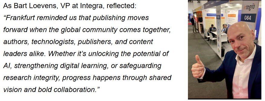 At this year’s Frankfurt Book Fair, Integra engaged in deep, future-focused discussions, from the role of AI in scholarly publishing to the evolution of digital learning ecosystems and research integrity frameworks.